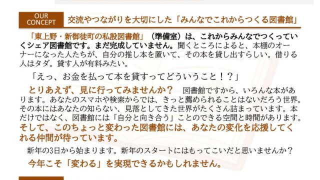 イベント No.13 新年1月3日(土)開催!「ちょっと変わった図書館から始まる『新しい自分を探す旅』」